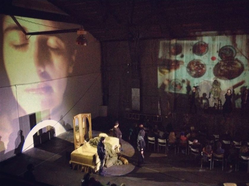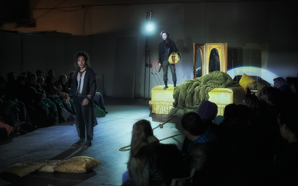 For this project we converted a SOMA warehouse into an immersive environment: in the opening scenes of the play spectators mingled and waited for the emergence of the Royal Court on their nightly promenade. The audience was then led into the the cavernous court for the spectacle that followed.