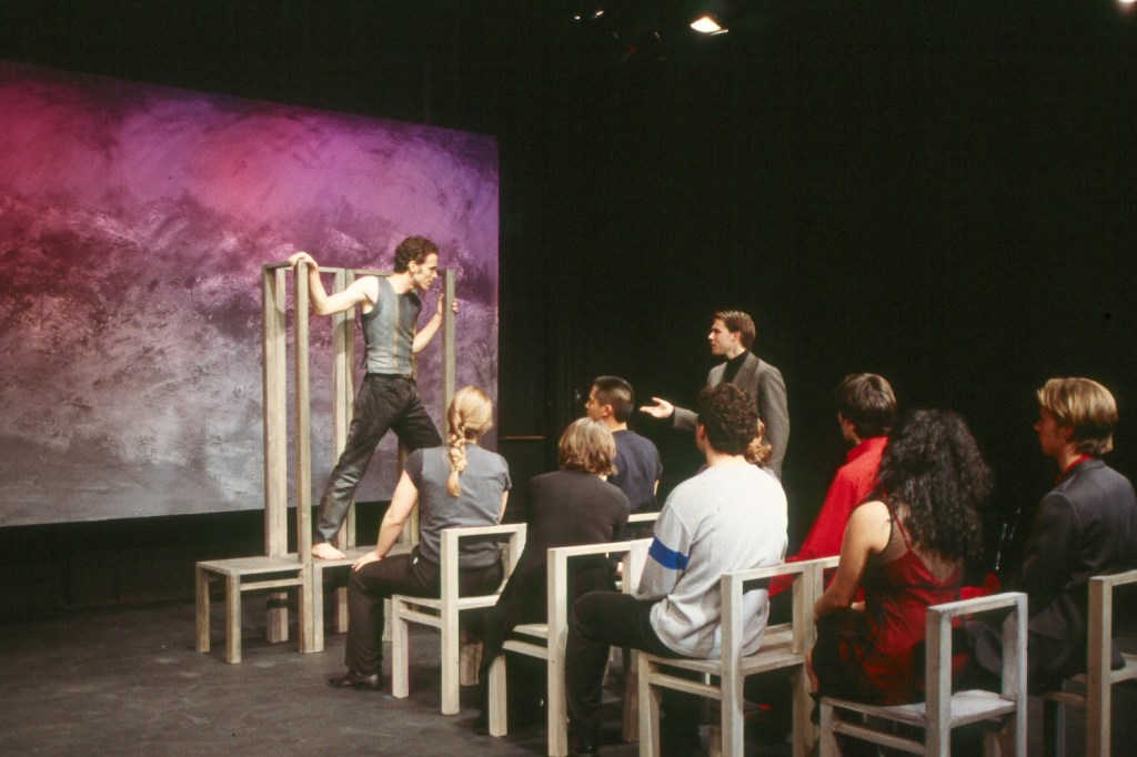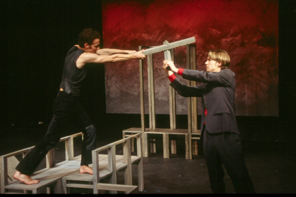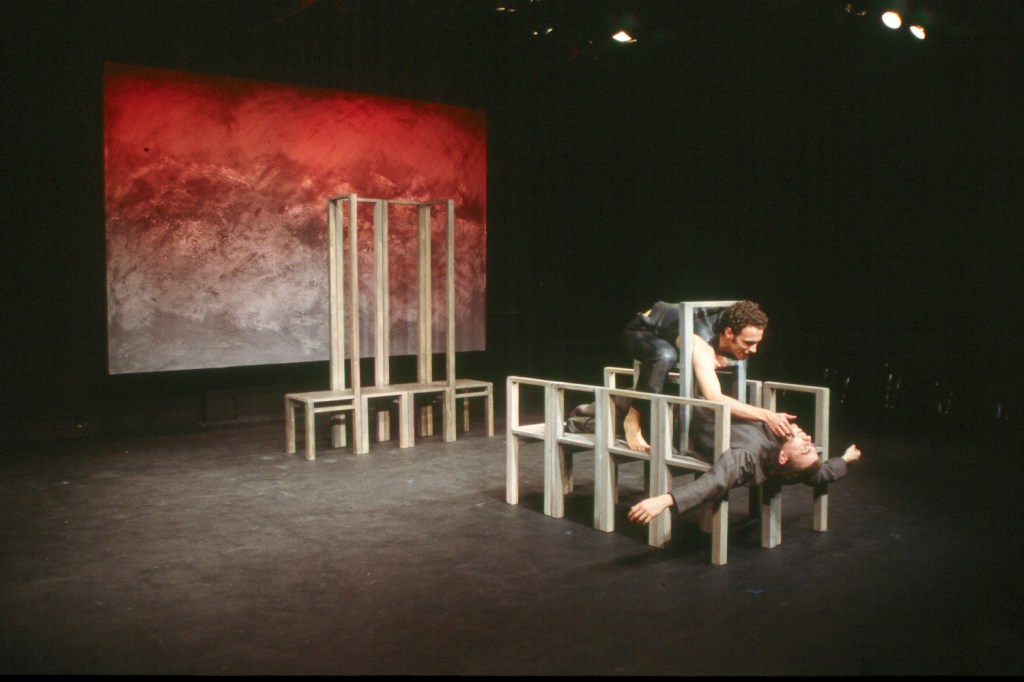 For Pedro Calderón de la Barca’s masterpiece Life is a Dream at Stanford, we built a set of minimal chairs in two sizes — exaggeratedly short and tall — out of which the actors created all of the scenes in the play.